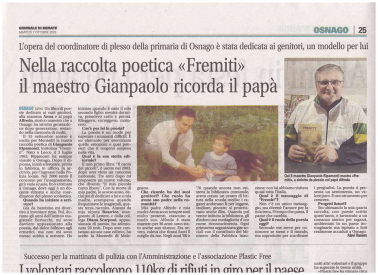 Recensito sul Giornale di Merate / Giornale di Lecco il libro «Fremiti» di Gianpaolo Ripamonti